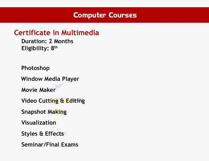 ertificate in Multimedia